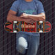 Phantastische Funky Muster auf diesem Skateboard. Farbenfroh, mit einem Feld, das Sie Ihren/den Namen hinzufügen können. Cool.