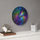 Farbenfroh mit blauem, modernem Abstraktem Fraktal Große Wanduhr