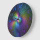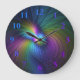 Farbenfroh mit blauem, modernem Abstraktem Fraktal Große Wanduhr