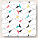 Abstraktes Hintergrundmuster mit Linien, die Würfel bilden, und bunten Dreiecken. Moderne, spielerische, lustige Vektorgrafik.