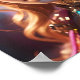 Eine junge Frau mit langen, gewellten Haaren ist in einer hoch entwickelten robotischen Rüstung mit leuchtenden blauen und rosa Lichtern geschmückt. Der futuristische Rahmen wird durch den Kopfhörer noch verstärkt, der auch ein weiches, farbenfrohes Licht ausstrahlt.