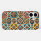 Lebhafte, farbenfrohe iPhone 16 Gehäuse mit Fliesenmuster in Rot, Blues und Gelb