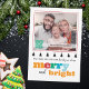 Bringen Sie mit unserer Funny Retro Merry & Bright Modern Colorful Christmas Card eine unglaublich witzig Drehung in die Festsaison. Mit einem Single-Foto, mit dem Sie Ihren Lieblingskomfort präsentieren können, präsentiert sich diese Karte in einem modernen, aber dennoch Retro-Schwarz-Weiß-Design. Fügen Sie Ihren Urlaubswünsche eine zusätzliche Unterhaltung hinzu, mit einer personalisierten Front, die Ihren Familiennamen und das Jahr zeigt. Es ist so konzipiert, dass es Lachen und Freude bringt und das wunderschöne Chaos des Familienlebens perfekt umarmt. Auf der Rückseite gibt es Raum für eine individuelle Nachricht, die es Ihnen ermöglicht, Ihre herzlichen Urlaubswünsche oder Spaß-Gefühle zu teilen. Die weihnachtliche Weihnachtskarte mit ihrem hochwertigen Druck sorgt dafür, dass sich die Shenanigans Ihrer Familie in dieser Urlaubssaison auszeichnen! Entworfen von Simple Desert Designs Studio.
