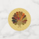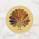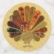 Erntedank-Illustration mit einem bunten und lustigen Truthahn in braunen Herbsttönen.