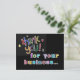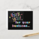 Diese farbenfrohe und helle Postkarte ist eine nette Postkarte, die Sie an Ihre Kunden schicken können, um Ihre Geschäftskunden zu stärken. Werfen Sie einen positiven Eindruck von denjenigen, die Ihre Business Services nutzen oder bei Ihnen Einkäufe tätigen. Ein nettes Dankeschön ist immer in Erinnerung.