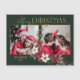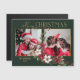 Feierliche und farbenfrohe Urlaubsgestaltung mit zwei Fotovorlagen mit individuellem Gold Merry Christmas Text Grafik mit einem Spray von traditionellen Weihnachtspoinsettias und heilig auf einem grünen Hintergrund.
