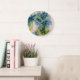 Farbenfrohe Abstrakte Blau- und Grüne Blumenkunst Große Wanduhr