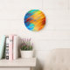 Farbenfrohe abstrakte blaue orange Flammen Große Wanduhr