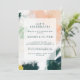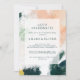 Dieses farbenfrohe abstrakte und fröhliche Fest ist perfekt für Ihr modernes boho Party. Handgemalt mit strukturierten Pinselstrichen aus dunklem Smaragdgrün, Pfirsich und Senf, alles überlagert mit einem minimalistisch transparenten Quadrat, ist es sicher, Ihrem Anlass ein einfaches, aber rustikales bohemianisches Gefühl zu geben.