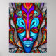 Die KI generierte afrikanische Stammesmaske vorwiegend in Blues und Purpur.