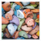 Foto einer Kiste voller farbiger Felsbefestigungen für eine Kletterwand im Innenbereich