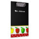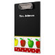 Stilvolle Lehrer-Zwischenablage, schwarz gemacht, mit Grafiken einer farbigen Band, über den Grund, mit Äpfeln und Polka-Punkte. Personalisieren Sie den weißen Text oben, um Ihre Bedürfnisse zu Anzug.