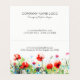 Elegante, farbenfrohe Blume mit roten Pappeln über anpassbarem weißem Hintergrund. Doppelseitige vollfarbige Hochzeitsplaner Visitenkarte Vorlage.