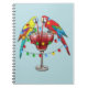 Farbenfrohe Ara Parrots trinken Roten Wein Notizblock