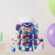 Farbenfrohe Astronauten und Univers in kühlen Farb Geschenkpapier