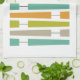 Dieses fabelhafte, moderne Küchenhandtuch aus der Mitte des Jahrhunderts bietet stapelende Ausrufepunkte in den Farben Türkis Blau, Orange, Bräune, Avocado Grün, Blau und Schwarz. Fügen Sie das etwas trendige hinzu, das Ihre Küchendekoration braucht.