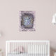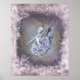 Dies ist ein zeichn einer Ballerina in einem großen Jete-Sprung. Es ist in blau, lavender und pinks und hat eine hellrosa Schnürung mit Schmetterlingen und Blume.