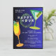 Hier ist eine einfache, aber farbenfrohe Einladung für jede kommende Happy Hour! Große Getränke vervollständigen das Design mit fett-weißem Schriftart auf dunkelblauer und schwarzer Farbskala. Hinter den Worten "Happy Hour" steckt auch eine Uhrenkizze für einen künstlerischen Look. Einfach zu identifizieren Host oder Event Titel und Name, zusammen mit allen Ihren Angaben. Sieht auch digital gut aus.
