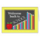 Diese Willkommens-Zurück-Schule-Grußkarten zeigen ein Chalkboard-Thema mit farbigen Stiften und einem roten Apfel. Im Inneren finden Sie personalisierbaren Text, der Ihnen eine persönliche Nachricht hinzufügen kann.