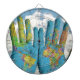 Farbenfrohe bemalte Weltkarte in Handarbeit, Art F Dartscheibe
