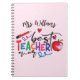 Trendy personalisiertes Notizbuch für Lehrer. Das Schriftzeichen ''Bester Lehrer aller Zeiten'' in trendiger, bunter Schrift, Apfel- und Bleistift-Ikone und handgezeichnete Herzen. Personalisieren mit einem Namen. Perfekt als Geschenk.