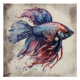Eine farbenfrohe Bettfische ist eine detaillierte Aquarellfarbe mit ausdrucksvollen Augen, die vor einem weichen, verschwommenen Hintergrund dargestellt wird. Die natürlichen Farben verstärken das lebensechte Aussehen.