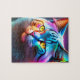 Farbenfrohe Big Cat mit Regenbogenfarben, Neonlich Puzzle