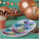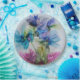 Farbenfrohe blaue Lila rosa grüne Blumenkunst Pappteller