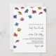 Farbenfrohe blumengeschmückte Hochzeitsfeiern mit treibenden Blume in Gelb, Blau, Violett und Orange vor weißem Hintergrund. Blumensommer Einladung in kräftigen Farben.