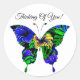 Farbenfrohe blaugelbe Schmetterlingsmuster Runder Aufkleber