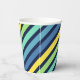 Papiertassen mit farbenfrohen blau-grünen und gelben Streifen-Mustern. Sie machen tolle Tassen für jede Feier. Klicken Sie zum Hinzufügen von Text auf Anpassen. *Bitte beachten Sie, dass das Zazzle-Wasserzeichen, das in der Zoomvorschau angezeigt wird, NICHT auf dem gedruckten Endprodukt erscheint. © Rosewood and Citrus