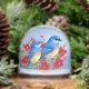 Farbenfrohe Bluebirds unter den roten Blume Schneekugeln