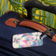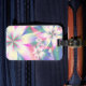 Elegantes und hübsches, abstraktes Gepäckstück mit Blumenmuster. Hellgelbe Blumen mit sanften Kanten verschmelzen mit einem hellen Regenbogen aus Akzent- und Hintergrundfarben für ein sanftes Fokusbild. Die Blume sind in einem Muster angeordnet, das sich über verschiedene Ebenen hinweg wiederholt, von groß bis sehr klein. Auf der Rückseite des Hotels gibt es Platz für eine Visitenkarte. Klicken Sie auf die Schaltfläche "Anpassen", um Änderungen am Bild vorzunehmen. Das Bild für unterschiedliche Ausblicke skalieren, verschieben oder drehen.