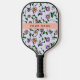 Farbenfrohe Blume, blauer Hintergrund, orange Pickleball Schläger