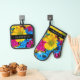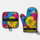 Farbenfrohe Blume, Daisis, Boho, Ihr Name Ofenhandschuh & Topflappen-Set