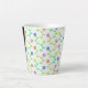 Farbenfrohe Blume, hellgrüner Hintergrund, schwarz Milchtasse