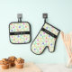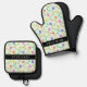Farbenfrohe Blume, hellgrüner Hintergrund, schwarz Ofenhandschuh & Topflappen-Set
