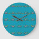 Farbenfrohe Blume Muster auf blauem Hintergrund Große Wanduhr