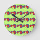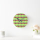 Farbenfrohe Blume Muster auf grünem Hintergrund Runde Wanduhr