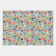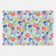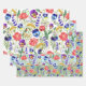 Set aus drei flachen Packpapier mit einem einzigartigen und farbenfrohen Muster lackierter Wildblumen: Mohn, Stiefmütterchen, Lavendel, usw., und Schmetterlinge, Bienen und Ladybugs.