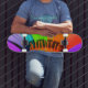 Dieses Skateboard hat farbenfrohe Blütenblätter auf der Blume.