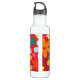 Farbenfrohe Blume Power auf rotem Muster Edelstahlflasche