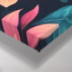farbenfrohe Blume und Blätter auf schwarzem Hinter Leinwanddruck