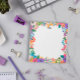 Mit Monogramm Notizblock mit Blumenrahmen mit Schmetterlingen, die auf Rose und Wildblumen in Rosa, lila, Blau und Gelb geklebt sind. Personalisieren Sie Ihre Initialen in marineblau.