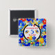 Farbenfrohe Blume und Schmetterlinge zum Geburtsta Button