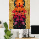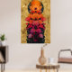Farbenfrohe Blume und Vollmondmalerei Poster
