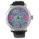 Uhr, Klassische Damenuhr mit schwarzen Lederarmband