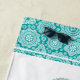 Farbenfrohe Blumengestelle auf Weiß und Türkis Strandtuch