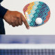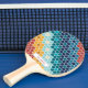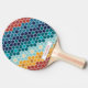 Ein wunderschönes Tischtennispongpaddel aus den 70er Jahren mit bunten Regenbogenmosaiken aus Hexagon-Muster. Dieses stilvolle Mosaik-Hexagon-Design ist ideal für jeden, der Groovy-Muster, geometrische Muster, Vintage Farbpalettendesigns usw. Lieben hat.