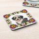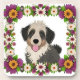 Farbenfrohe Blumenrahmen mit Niedlicher Hundelabbi Getränkeuntersetzer